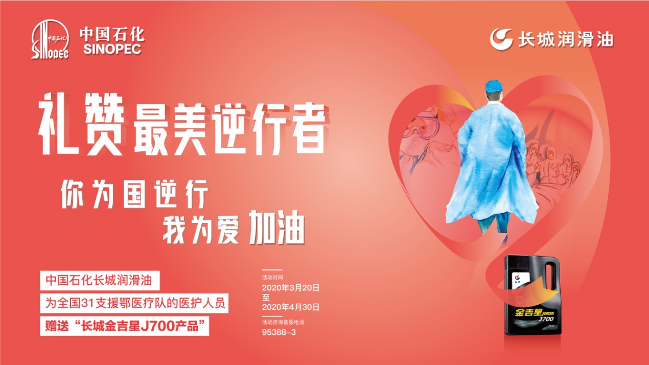 在全国人民众志成城攻抗疫情的这段日子里,战斗在一线的白衣战士成为当代最美的“逆行者”,全国各省区共计42322名援鄂医护工作者,义无反顾地投入疫情防控的最前线。随着战疫进入新阶段,英雄们载誉而归,社会各界对他们的奉献致以了最崇高的敬意。“你为国守护,我为爱加油”,考虑到医护工作者回归岗位时,闲置许久的爱车亟待进行春季保养,中国石化长城润滑油温暖发起“礼赞最美逆行者”感恩活动,为全国31支援鄂医疗队医护人员赠送长城金吉星J700产品,用一份温暖的小小祝福,表达对白衣战士们的亲切慰问。目前,已有7000多位最美“逆行者”报名参加,活动将持续到4月30日,希望更多的援鄂医疗队员收到中国石化长城润滑油的心意。