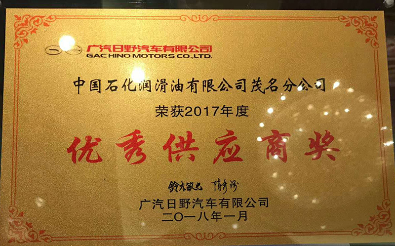 2018年长城润滑油蝉联广汽日野年度优秀供应商