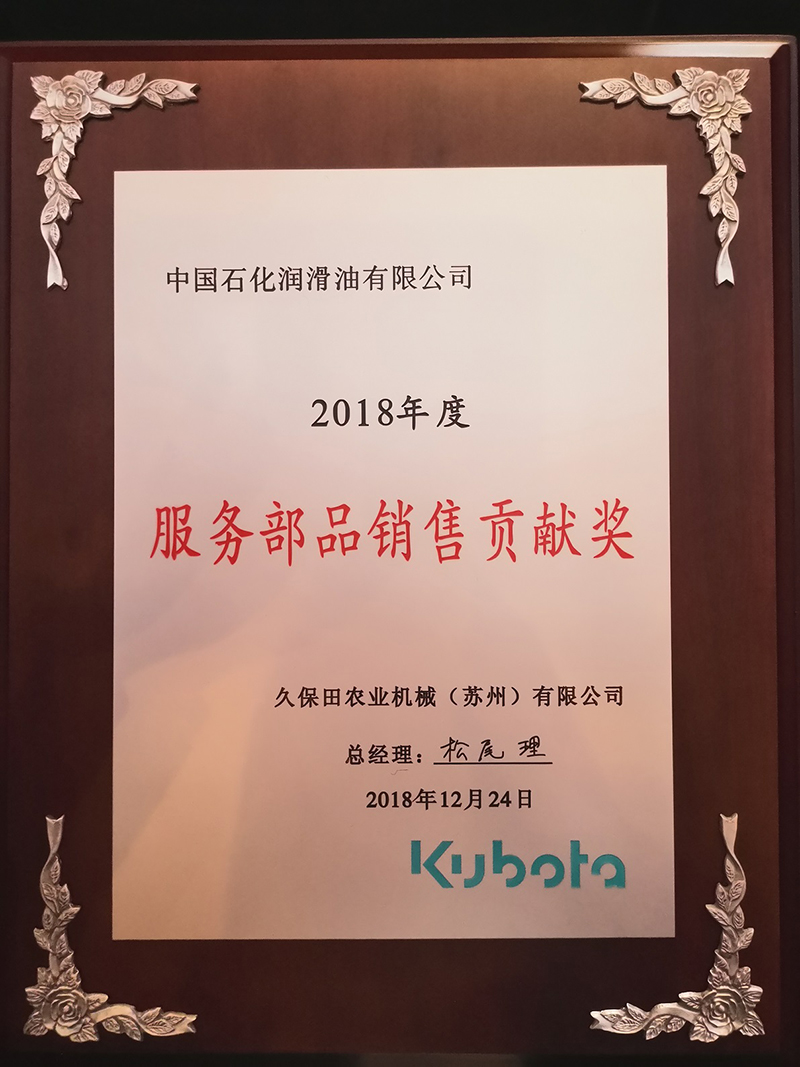 2018年长城润滑油获得久保田服务部品奖