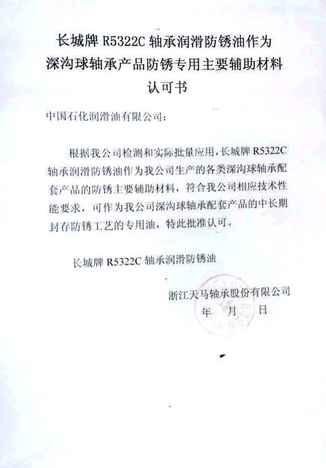 【金属加工液】长城R5322C轴承润滑防锈油写入深沟球轴承涂装防护工艺规范文件