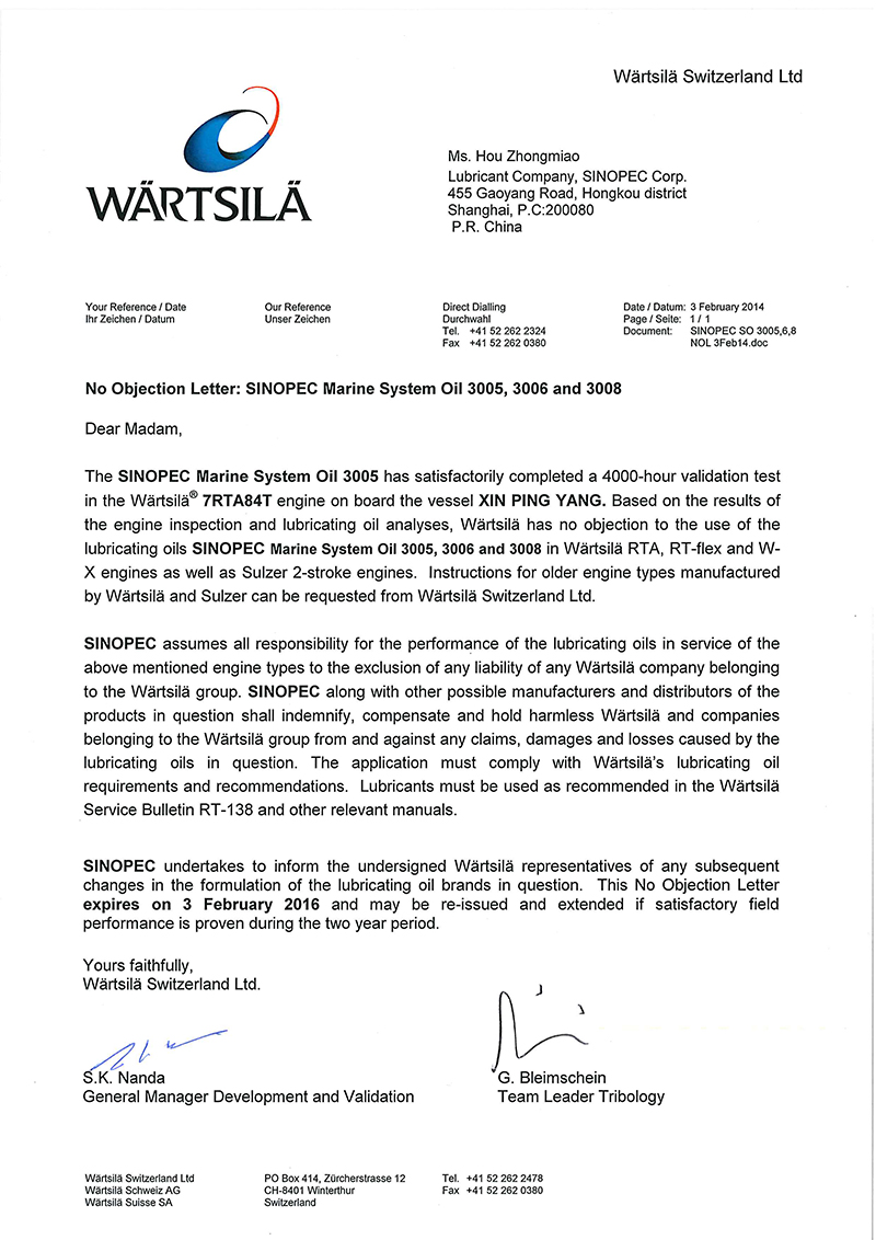 长城船用系统油3005 3006 3008获得Wartsila认证