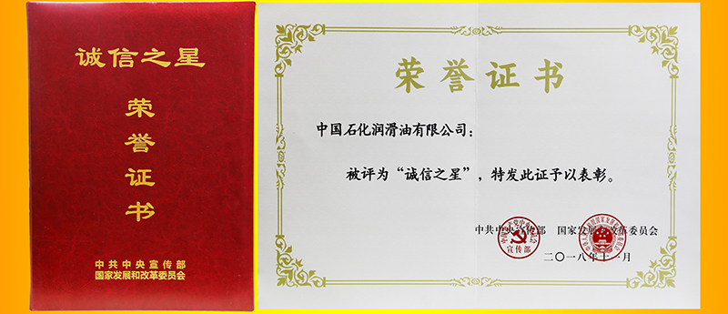 2018年12月长城润滑油获得诚信之星称号