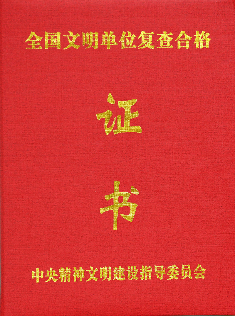 2017年11月全国文明单位复查合格证书