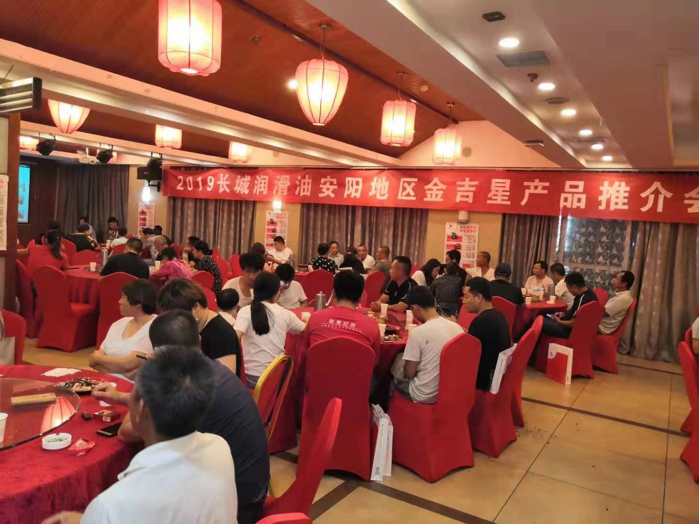 9月22日,中国石化润滑油有限公司武汉分公司在平顶山组织召开长城金吉星秋季推广会。平顶山市道路运输协会和交通运输管理局相关领导及120余位汽修厂老板、修理工参加会议。活动向客户介绍了中国石化润滑油公司实力、品牌优势、产品特点,“星盟优客”政策及长城变速箱油推广方案,会议气氛热烈,现场订货火爆。