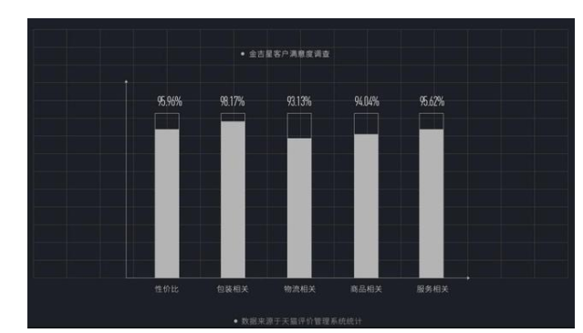 入驻淘宝商城9年来,400万客户的共同选择,因为值得信赖。根据天猫评价管理系统统计,金吉星客户满意度调查中的性价比好评达到了95.96、包装相关达到了98.17%、商品相关达到了94.04%、服务相关达到了95.62%、物流相关达到了93.13%。如果以满分100分的成绩来看,长城润滑油金吉星妥妥的“尖子生”啊。