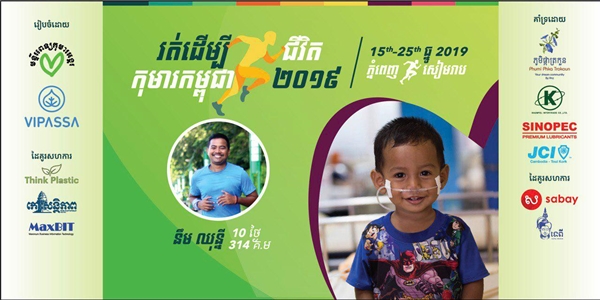该慈善募捐活动于12月15日至25日举行,以远途长跑为主题开展,参与者在10天内独自从金边到暹粒市全程跑完314公里。以此活动吸引社会募捐。中国石化润滑油越南代表处向本次活动提供了活动T恤、帽子以及相关横幅等支持。