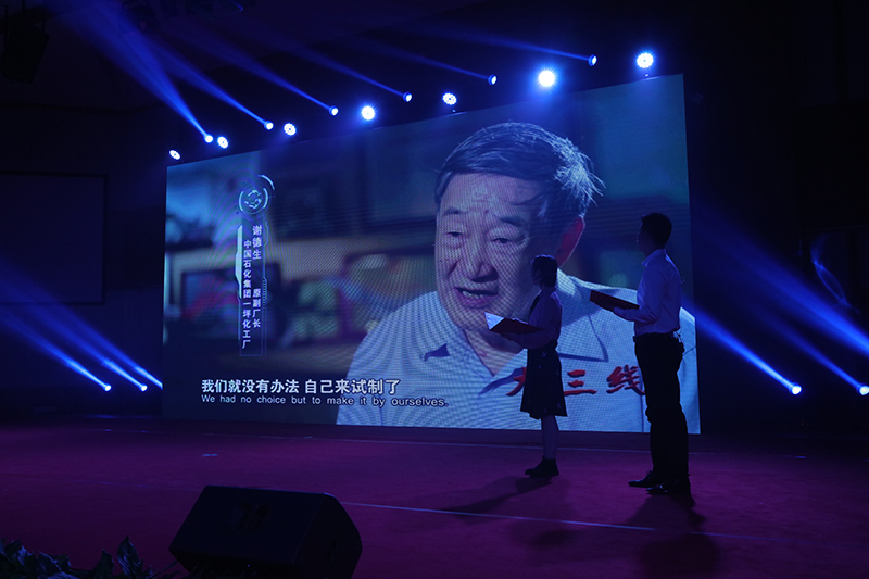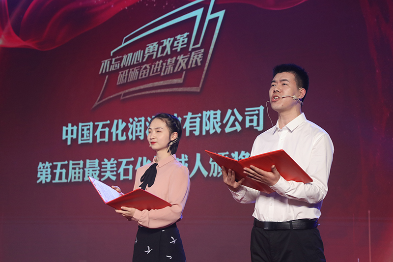 诗朗诵《石化长城》,抒发了干部员工作为石化人的骄傲,作为长城人的自豪,以及发挥一体化优势攀登新高峰的豪情。