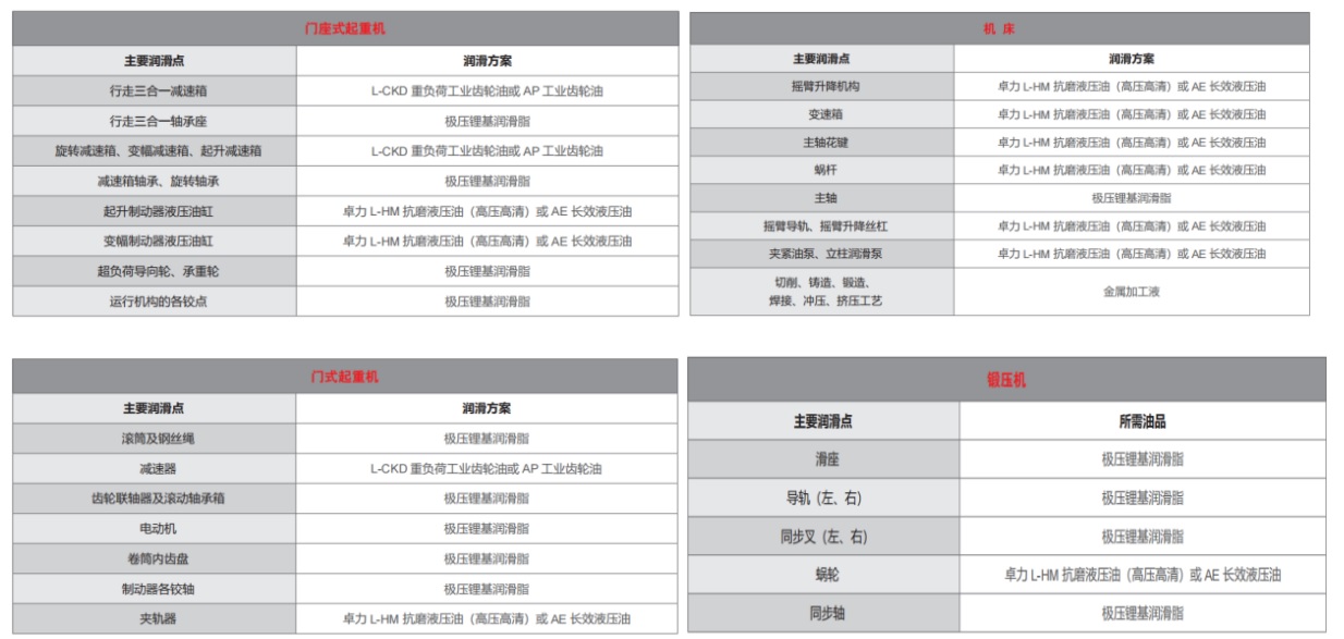 船舶制造行业有着设备品种多、设备成套化、制造工艺复杂、工期长等特点,其涉及的主要用油设备包含门座式起重机、门式起重机、锻压机、船用吊机以及各类机床等,部分设备承受带冲击性的重负荷,且长期处于工作温度高、运动速度高的恶劣工作环境。