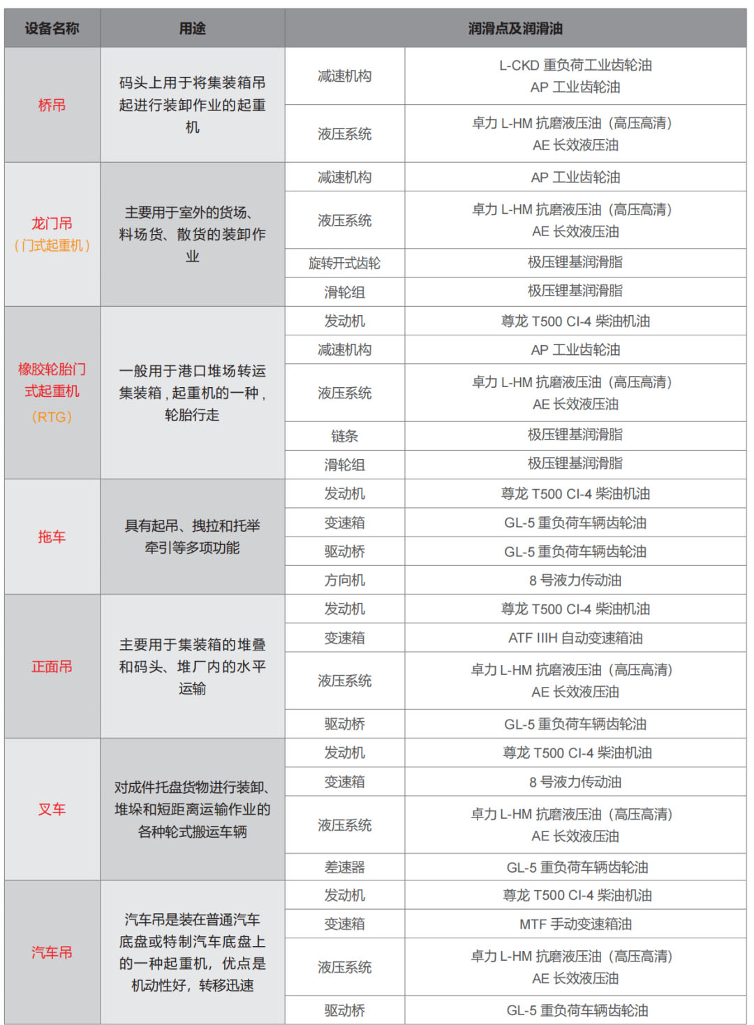 港口码头设备全面润滑解决方案