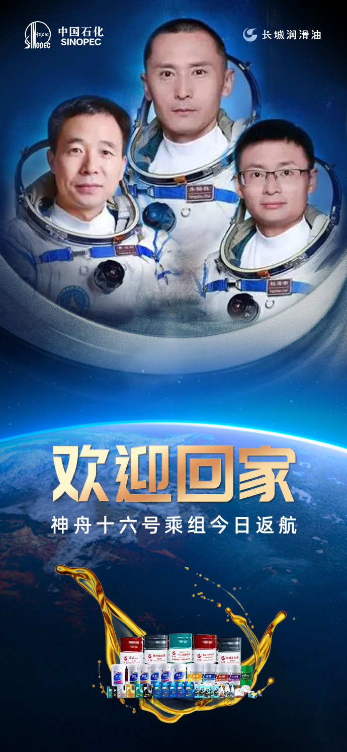 中国石化长城润滑油欢迎神舟十六号回家