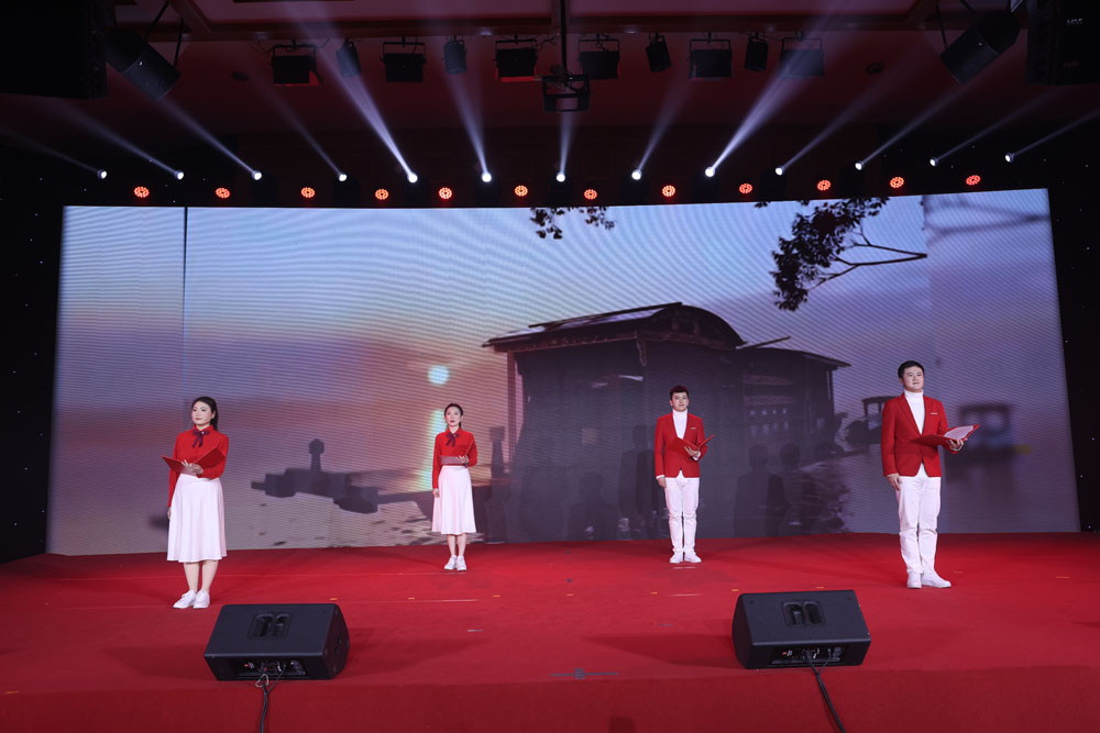诗朗诵《青春心向党、奋进新征程》表达在党的光辉照耀下,一代青年人坚定信念,不负韶华,用青春和汗水书写新时代华章。
