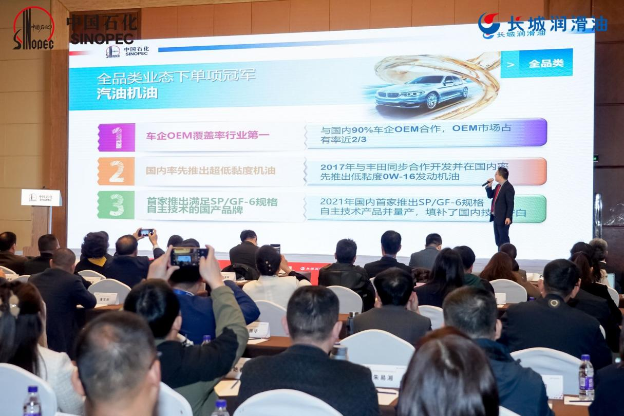 中国石化润滑油有限公司市场营销部副总经理陈钊锋发表了题为《以全品类经营促全产业链高质量发展》的报告。从“全品类、全聚合、全赋能”的角度,详细阐述了润滑油公司在实现“全面的专业润滑”、“聚合能量、价值创造”以及“品牌+技术+商品+服务”发展中的成果与方向。