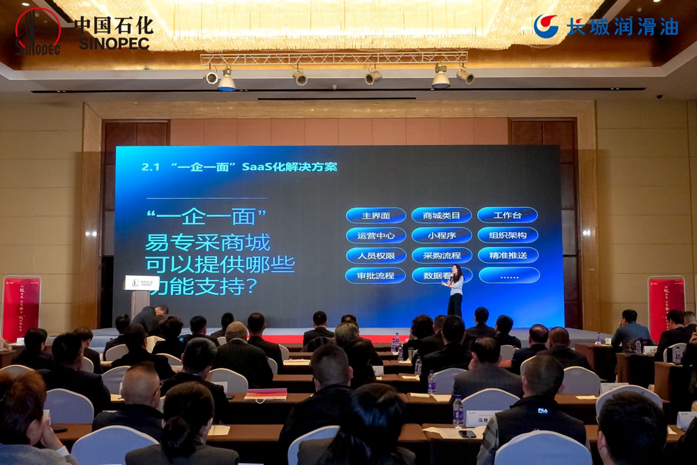 会上,中国石化润滑油有限公司副总经理莫悚为大会致开场词,中国石化集团物资装备部供应链管理室副总经理何勤致辞讲话。