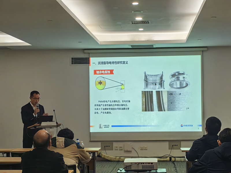 润滑油公司在展会期间与斯凯孚、舍弗勒、人本集团等来自轴承行业40余位专家进行了交流,围绕现使用润滑产品技术交流、新项目用脂需求、润滑脂产品销售渠道等多维度展开深入研讨。同时发布《润滑脂在球轴承中的动态导电特性研究》报告,系统、全面讲解了探讨了导电润滑技术的核心理念、实践应用以及润滑脂导电测试方法,特别是特殊“导电环”现象的研究,引发了与会者的热烈讨论和广泛关注。