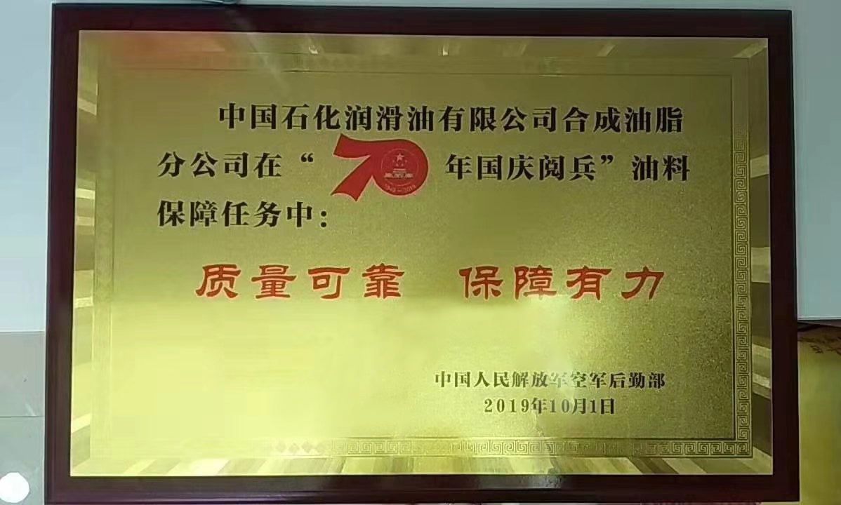 2019年中国石化社会责任报告中,中国石化长城润滑油保障国庆70周年阅兵的行动获得肯定。自1958年成立以来,长城润滑油一直是我国军用油料的主要供应单位。在“纪念中国人民抗日战争暨世界反法西斯战争胜利70周年阅兵”、“中国人民解放军建军90周年阅兵”等活动中,长城润滑油保障作用突出,多次受到表彰和嘉奖。
