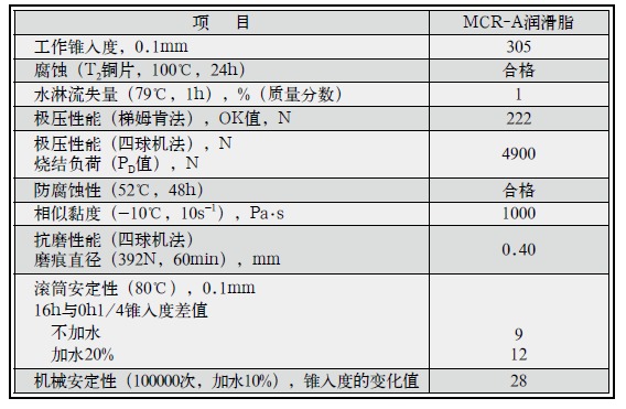 长城牌MCR-A润滑脂采用新型特殊稠化剂稠化深度精制的高黏度矿物基础油,并加入抗氧、结构稳定剂等添加剂,经特殊工艺炼制而成。