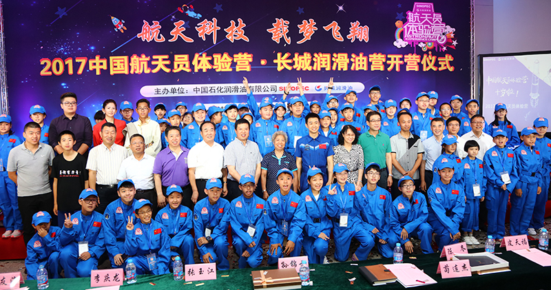 7月17日,长城润滑油•2017年中国航天员体验营开营,体验营的小营员们与2016年胜利完成飞行任务的神舟十一号乘组的航天员陈冬等一道,开启难忘的航天之旅。