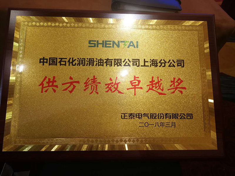 2018年长城润滑油获正泰电气“供方绩效卓越奖”