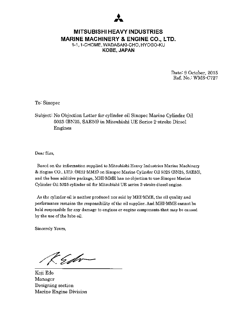 【船用油】长城船用气缸油5025获得三菱重工认证