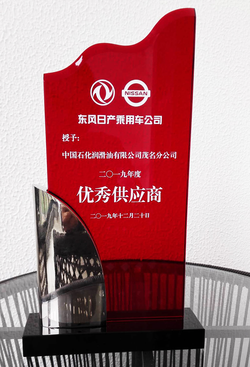 新年前夕,中国石化润滑油有限公司应邀参加东风日产2019年供应商大会。会上,长城润滑油荣获2019年度优秀供应商,这也是其第十次获得东风日产优秀供应商奖。