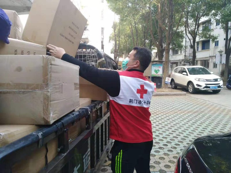 1月26日,大年初二的凌晨4点,荆门市深圳大道金洁医疗服务的仓库旁,停着几辆东风皮卡,一群戴着口罩,穿着红十字会志愿者服装的人们正紧张有序忙上忙下的往车里搬运医疗物资。陈俊峰和老战友早早的来到这里,按要求做好个人防护措施后,以饱满的热情投入到了防护物资的搬运工作中:一箱箱急需的医疗口罩,一桶桶一百多斤的消毒液,还有一提提测温仪、护目镜……后背衣服湿了又干,干了又湿,每个人分工合作,有条不紊。从大年初二到正月十四,从荆门城南的掇刀区到城北的东宝区,从设卡检查到机动车禁行,不能开私家车了,就骑自行车,或者干脆走路步行去参加志愿服务。这是一幅幅安静又热闹的场景,更是一场场生命与时间的赛跑!