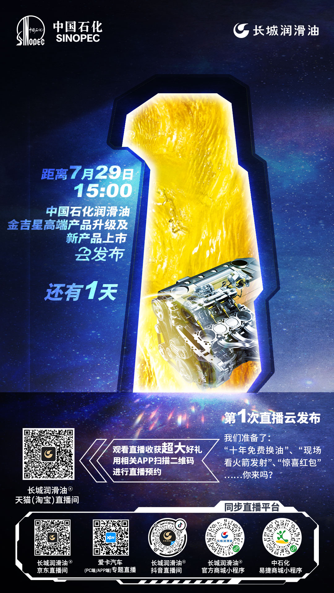 距中国石化长城润滑油新品云发布还有1天