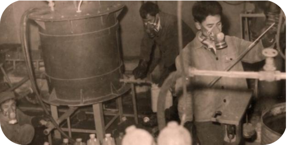 当时的621厂,根据国外生产氟油方法的简要报道,在实验室建立了小型氟制备装置,自行摸索研发全氟碳油,即使氟的钙流失副作用让研究员们的骨骼出现一个个微小的洞,他们也毫不退缩,“就是死也要把氟油搞出来”便是他们从未改变的信念与写照。功夫不负有心人,最终,621厂实现了氟油的稳定供给,圆满完成了为核工业配套全氟碳油的任务。
