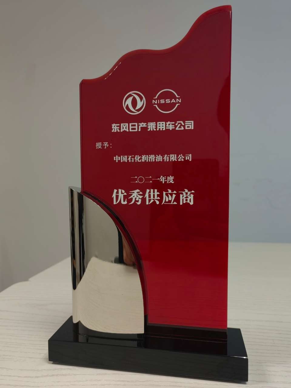 中国石化润滑油有限公司获东风日产2021年度优秀供应商奖