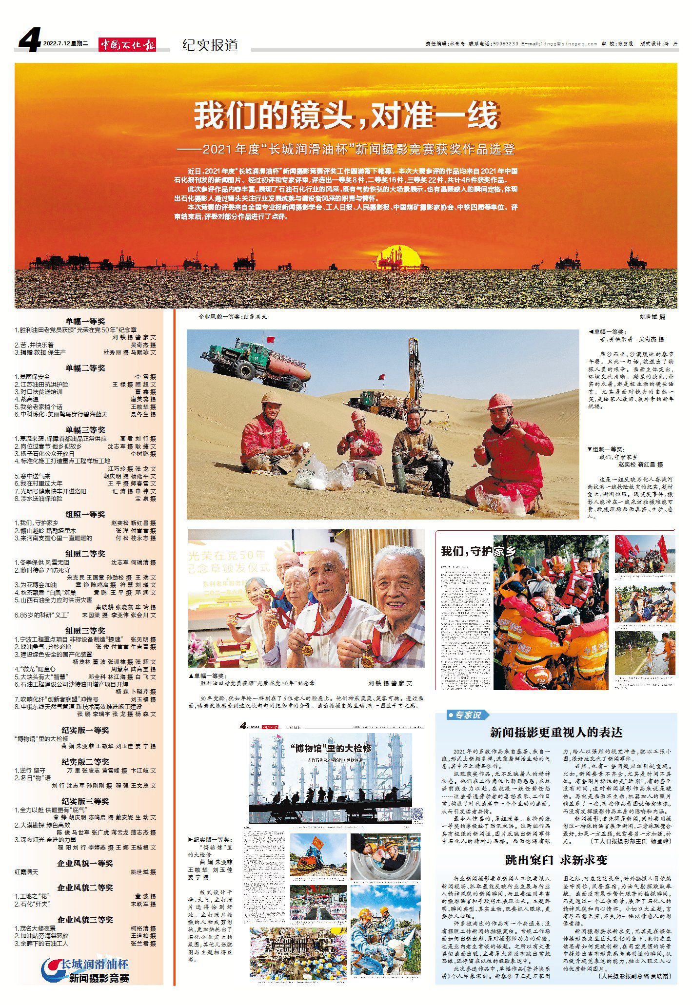 中国石化报“长城润滑油杯”新闻摄影竞赛获奖作品选登 附名单