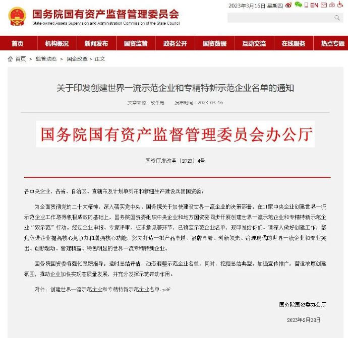 3月16日,国务院国资委印发了《创建世界一流示范企业和专精特新示范企业名单》,中国石化润滑油公司被评为创建世界一流专精特新示范企业。