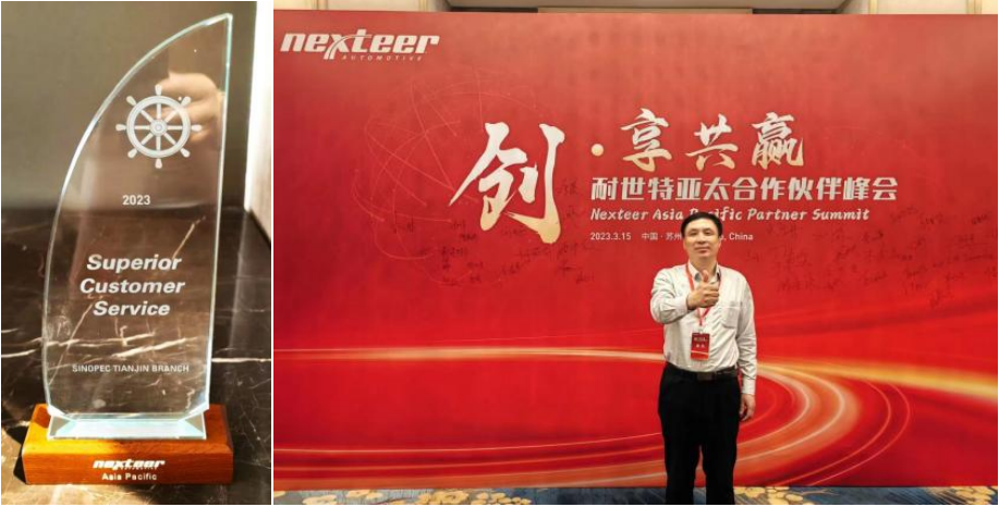 中国石化长城润滑油获耐世特凌云驱动系统有限公司“2023年度优秀供应商”