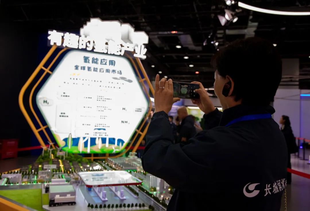 在了解完传统石油化工行业知识后,大家来到了“探索未来”展览单元,这里展示了太阳能、风能、水能、氢能等清洁能源的发展与应用,向大家科普我国首个百万吨级碳捕集、利用与封存(CCUS)工程,以生动形象的沙盘模型展示二氧化碳被捕集、液化、输送和封存在地层中的全过程,向参观者介绍“碳捕手”的科技实力。