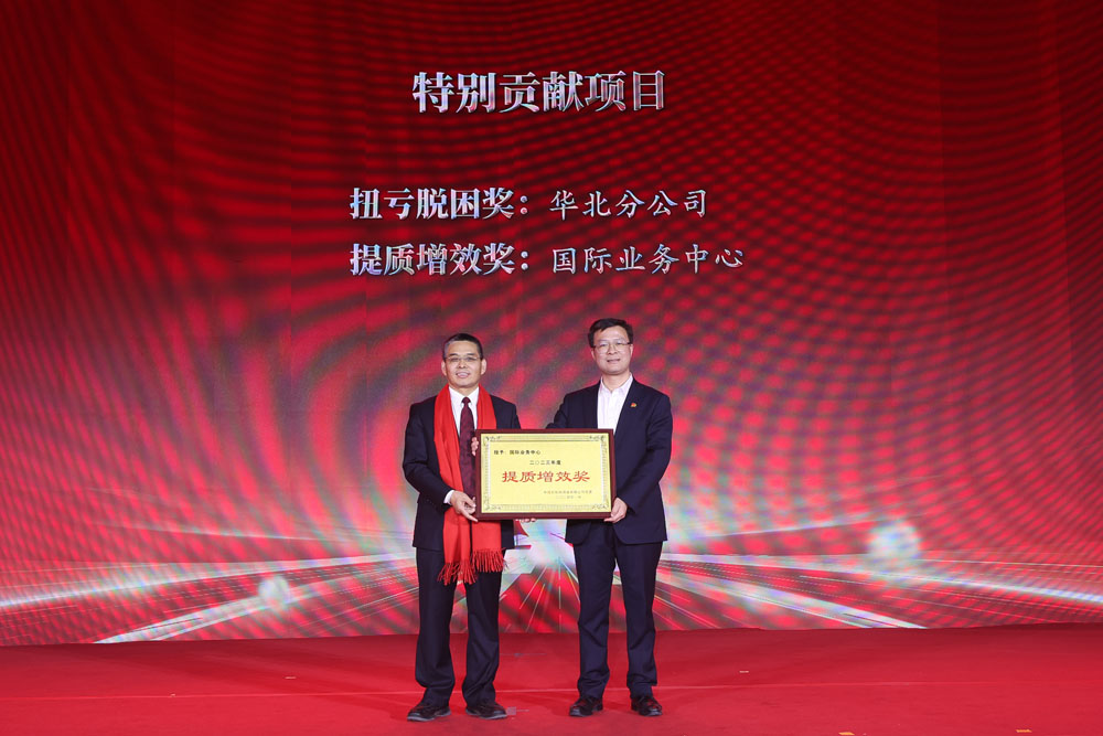 张春辉总经理向国际业务中心颁发特别贡献奖。