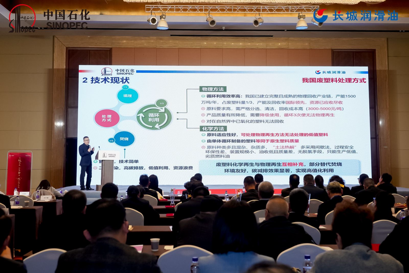 石油化工科学研究院六室党支部书记、副主任董明发布了《废塑料连续热解技术介绍》,介绍了废塑料连续热解技术在加强废塑料资源化回收利用、减少资源浪费、推动生态文明建设、保障国家能源安全的重要意义。以及中国石化在废塑料回收利用中的实质性进展内容。