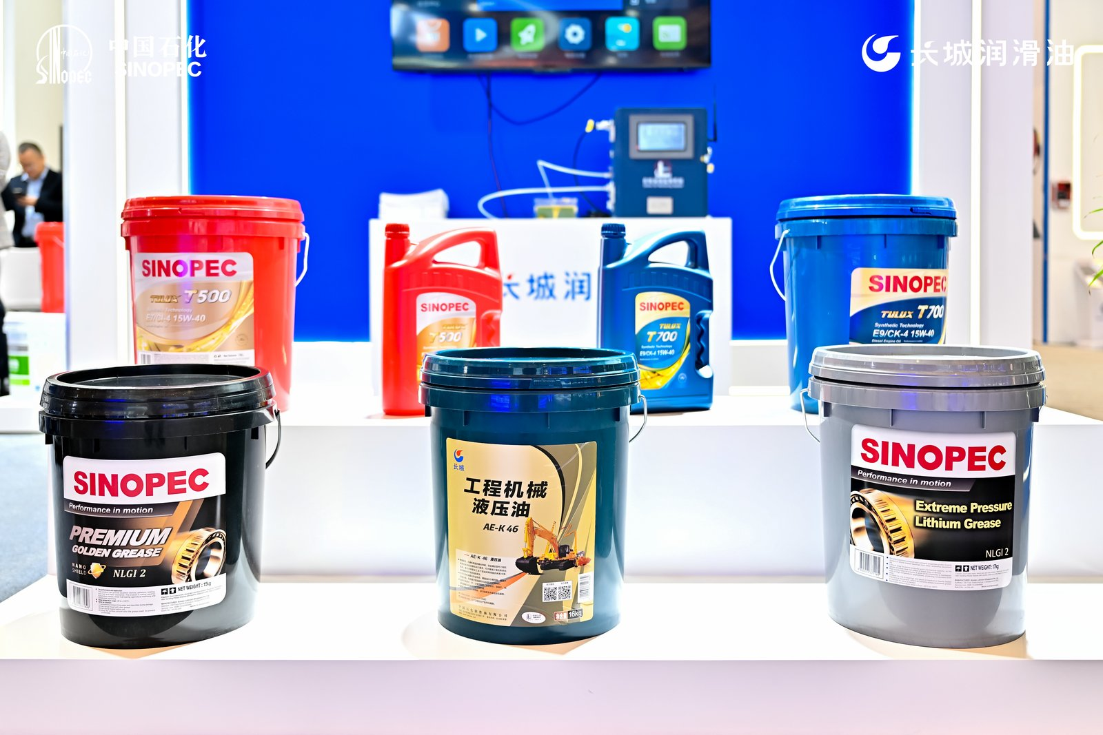 在润滑产品领域,长城润滑油展示了近二十种尖端产品,涵盖了液压油、齿轮油、润滑脂等多种类型。此外,长城润滑油还特别推介了其AE 5000宽温长效液压油、长城CK-4柴油机油、长城HP-R润滑脂、长城极压锂基润滑脂、二硫化钼锂基润滑脂等重点产品。