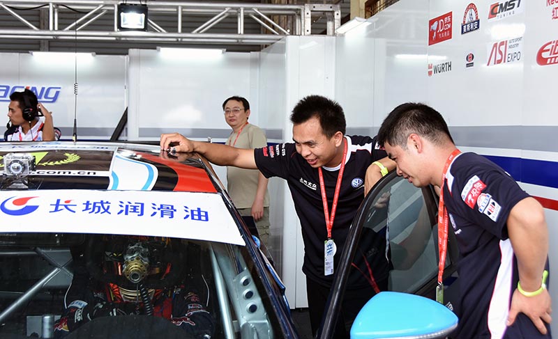 作为赛事冠名赞助商和车队服务商,长城润滑油从汽修一线邀请汽车修理工师傅现场观摩比赛,亲自感受长城润滑油金吉星全程助力上海大众333车队驰骋赛场的高端润滑技术,两位汽修工代表分别是来自广东东莞的杨进、福建厦门的林厦厦,他们随长城润滑油工作人员,穿上上海大众333车队队服,走进赛车休息间,与车手和赛车机械师零距离进行交流。他们表示:作为一名汽车维修技师,非常喜欢这个行业,能现场观摩参与调校赛车,可以说是一个维修技师的最高追求与梦想。在日常的修车中,一直信赖长城金吉星机油,这次看到长城润滑油冠名CTCC房车赛,长城金吉星更是为上汽大众333车队提供从油品到技术的全面润滑保障,真的为国产机油自豪。拍了很多照片分享给私家车客户,让他们感受一下长城润滑油的赛车基因。