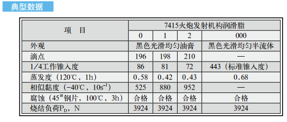 长城牌7415火炮发射机构润滑脂是以皂基稠化剂稠化合成油,并加入抗氧、抗腐