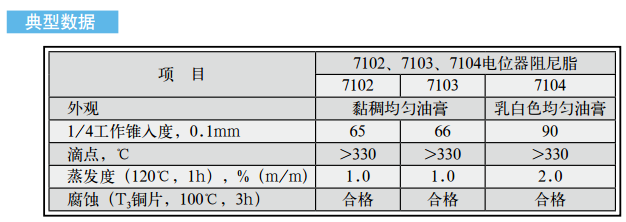 长城牌7102、7103、7104电位器阻尼脂是以无机稠化剂稠化合成油,并加入防锈、